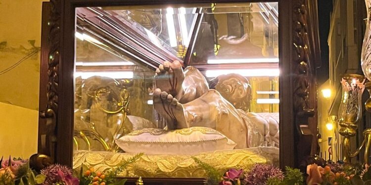 Uno de los aspectos más singulares de la jornada fue la forma en la que el Cristo Yacente recorrió las calles. A diferencia de su salida del Sábado Santo, cuando se presenta sobre su lecho mortuorio al descubierto, en esta ocasión lo hizo en la urna de cristal con molduras de madera que habitualmente se conserva en su capilla.